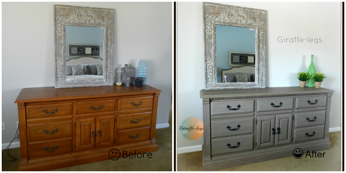 I am still working on redecorating my master bedroom. Gosh, it feels like forever, but the good thing about it, is that it's upstairs and tucked away, so people never really see the mess. My latest painting job may very well be my most difficult to date. Looking back at the pictures I realize I've been working on this for almost two months, but seriously I am in love and don't care how long it took. I wanted to try and re-create the wood on my new Restoration Bed. If you look carefully in the mirror you can see a glimpse of it. They have such a beautiful finish, and while I splurged on the bed, spending $3,000 or so on a dresser just wasn't happening. Especially when we had a really great quality dresser, with a not so great finish straight out of 1992.